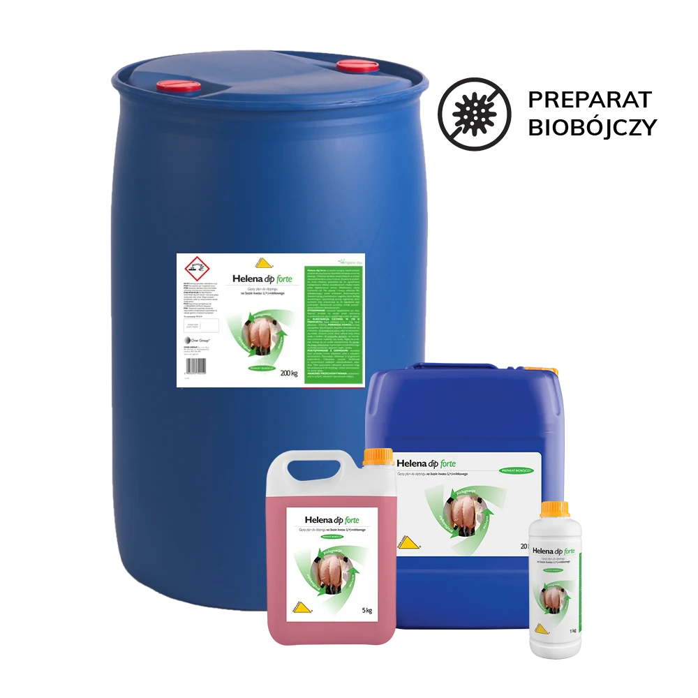 Helena Dip Forte to profesjonalny płyn do dippingu strzyków, przeznaczony do stosowania bezpośrednio po udoju. Preparat oparty na kwasie mlekowym wykazuje silne właściwości antybakteryjne i przeciwgrzybicze, a jego gęsta konsystencja tworzy widoczną warstwę ochronną, która utrudnia przenikanie drobnoustrojów przez kanał strzykowy.