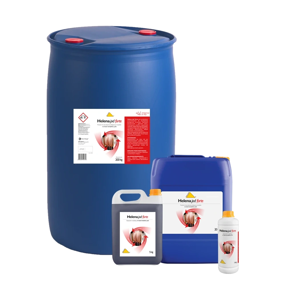 Helena Jod Forte to profesjonalny płyn do poudojowej higieny strzyków zaprojektowany z myślą o hodowcach bydła mlecznego. Preparat zawiera silnie działający kompleks jodu nieorganicznego (do 5000 ppm), który efektywnie hamuje rozwój bakterii, wirusów, pleśni i grzybów, tworząc trwałą barierę ochronną na powierzchni strzyków.